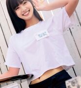 清楚で笑顔位が素敵なアルバイトスタッフ大きな瞳が印象的接客中、テーブル下からスカート内も確認桃色パンツが青空に浮かぶ短い丈のTシャツの隙間を下から隠し撮り何気なく彼女の尻にタッチ屋外階段に捕獲